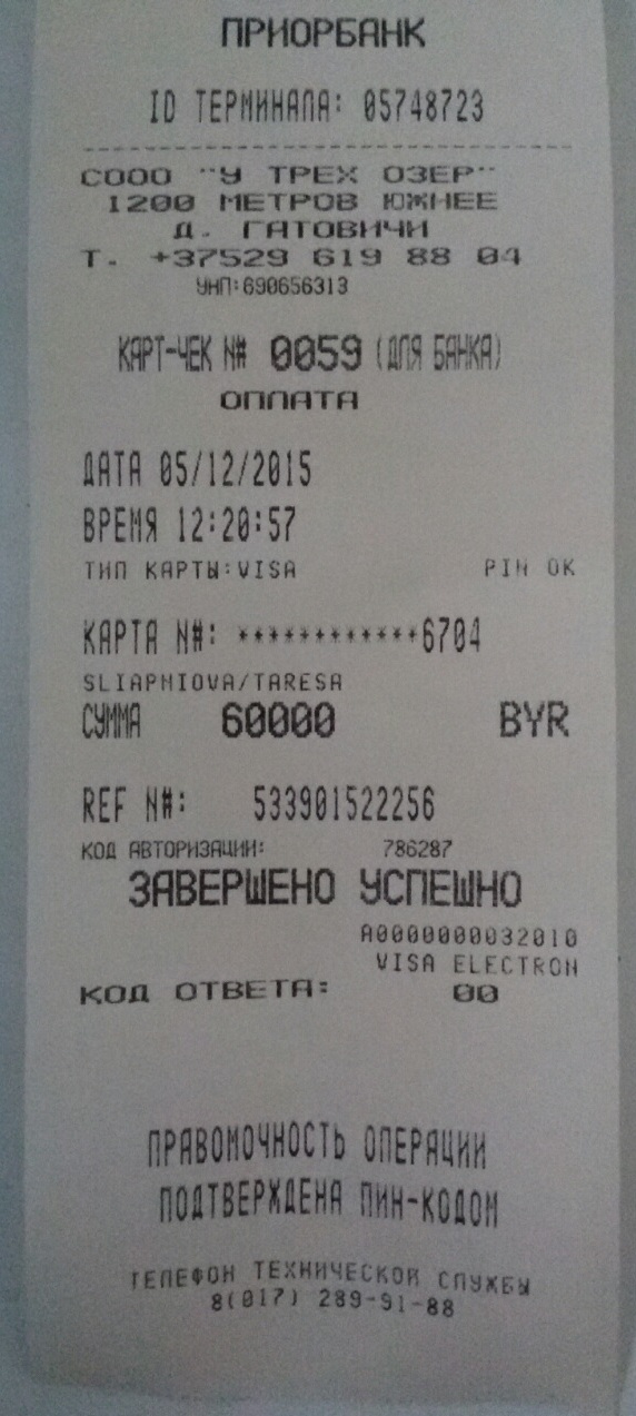 6. После проверки товара рассчитайтесь с работником интернет-магазина (при получении товара на нашем складе) или представителем РУП «Белпочта» (расчет производится банковской картой через терминал или наличными).