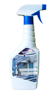 - смочите обрабатываемую поверхность водой. Распылите средство и оставьте на 2-5 мин. Далее протрите поверхность губкой и промойте проточной водой.